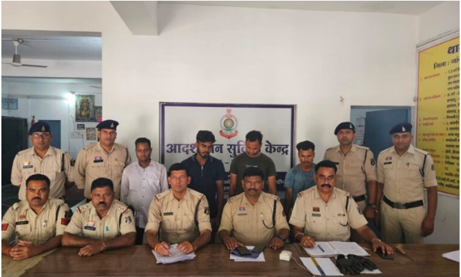 जांजगीर – आरक्षक द्वारा संचालित चोर गिरोह का भंडाफोड़ जांजगीर पुलिस ने किया है। जहां आरक्षक सहित कुल आठ आरोपियों को गिरफ्तार किया गया है जिनमे चार नाबालिग भी शामिल है। आरोपियों के कब्जे से पुलिस ने 10 लाख रुपए की संपत्ति बरामद की है। मिली जानकारी के अनुसार प्रार्थी ने स्थानीय थाने में रिपोर्ट दर्ज कराते हुए बताया था कि घटोली चौक के पास चांपा मे दुकान है जिसमें भवन निर्माण सामग्री की बिक्री करता है। घटना दिनांक 18-19.05.2025 के दरम्यानि रात इसके दुकान के सामने रखें 3.5 टन राड (सरिया) को किसी अज्ञात चोर के द्वारा चोरी कर लिया गया है। इसी तरह पास के एक अन्य दुकान संचालक तनिष्का टाइल्स बिरमा राम गुरज़र ने भी थाने में शिकायत पर पुलिस को बताया कि उनका मार्बल टाइल्स का शोरूम है जहां से इसी घटना दिनांक को अज्ञात आरोपियों द्वारा ग्रेनाइट पत्थर तथा अन्य सामग्री चोरी कर लिया गया है उक्त घटना के संबंध में सूचना प्राप्त होने पर थाना चांपा में तत्काल पृथक पृथक अपराध पंजीबद्ध किया गया।मामले की जांच में थाना चांपा / जांजगीर कोतवाली , सायबर की टीम ने सयुक्त रूप से शुरू किया। इस दौरान पता चला कि पुलिस लाइन जांजगीर में पदस्थ आरक्षक शशिकांत कश्यप भी चोरी की घटना में संलिप्तता है। जिसपर पुलिस ने भाटापारा वार्ड क्रमांक 25 जांजगीर निवासी आरक्षक शशिकांत कश्यप को पकड़ा और पूछताछ शुरू की। जिसमे आरक्षक ने अपने अन्य साथियों के साथ अलग-अलग स्थान पर चोरी की घटना कारित करना स्वीकार किया तथा पूछताछ पर बताया, सभी मिलकर चोरी करना स्वीकार किए घटना को अंजाम देकर मौके से फरार हो जाते थे उक्त आरक्षक के निशानदेही पर अलग-अलग स्थान से 04 नाबालिग और बलौदा निवासी उदय कुमार यादव, अमोदा नवागढ़ निवासी राजू देवांगन और भैंस मुड़ा निवासी मनीष मिश्रा को पकड़ा गया।