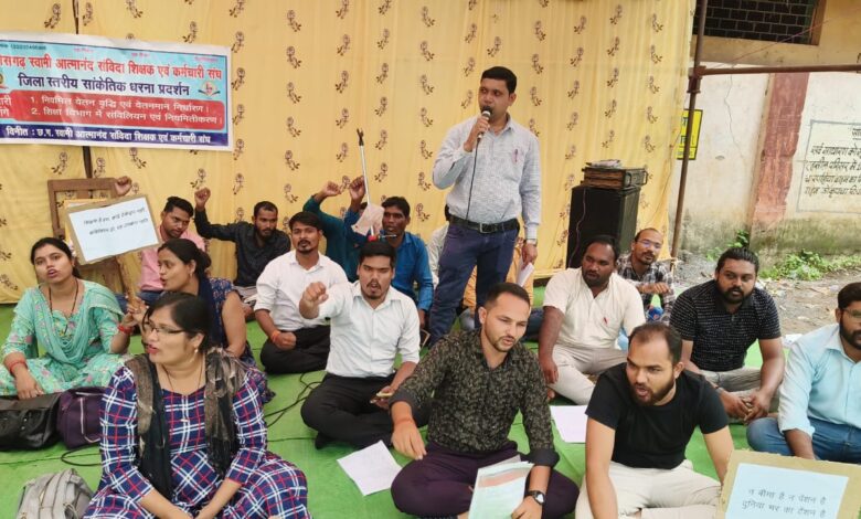 सारंगढ़ बिलाईगढ़ – स्वामी आत्मानंद संविदा शिक्षक एवं कर्मचारी संघ ने शिक्षा विभाग में संविलयन/नियमितीकरण और वेतन वृद्धि की दो सूत्रीय मांग को लेकर सारंगढ‑बिलाईगढ़ ज़िला में एक दिवसीय सांकेतिक धरना आयोजित किया।