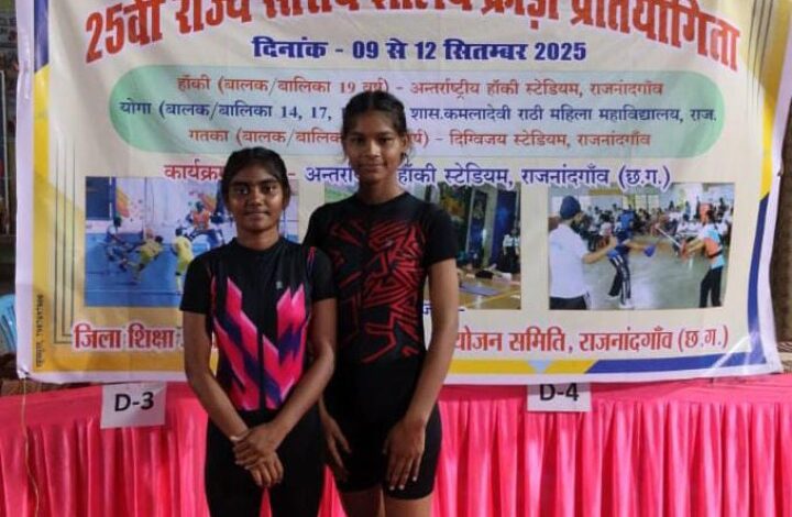 राज्य स्तरीय योगासन प्रतियोगिता में निशा खूंटे और खिलेश्वरी बंजारे को मिला द्वितीय पुरस्कार…