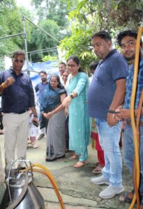 सारंगढ़-बिलाईगढ़ – कलेक्टर डॉ संजय कन्नौजे ने ग्राम झनकपुर के पशुपालक किसान, लखपति दीदी मनोरमा नायक एवं जीवनलाल नायक के डेयरी का निरीक्षण घर जाकर किया। इस दौरान वहां उनके बाड़ा में 5 एचएफ (जर्सी) गाय और उनके बछड़े थे। बाड़ा में बिजली व्यवस्था, बैठने के लिए सीट, खाने के लिए चारा में कुटी (पुआल के टुकड़े), खली, सफाई के लिए टंकी, दूध दुहने के लिए मशीन, गोबर से गोबर गैस बनाने का सेटअप आदि आवश्यक सुविधा को अपनाया गया है। कलेक्टर ने इन सभी व्यवस्थाओं का अवलोकन किया। कलेक्टर डॉ कन्नौजे ने पशुपालक किसानों को कहा कि इस गौसेवा कार्य को अन्य ग्रामीणों को भी अपनाने के लिए प्रेरित करें। इस दौरान एसडीएम वर्षा बंसल, सीईओ जनपद पंचायत बरमकेला अजय पटेल उपस्थित थे।