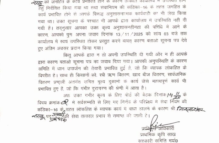 धान खरीदी में लापरवाही पर 4 प्रभारी प्रबंधक का सेवा समाप्त…