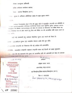 बिलाईगढ़ – सूचना के अधिकार अधिनियम 2005 के तहत पुलिस अधीक्षक कार्यालय सारंगढ़ बिलाईगढ़ में किया गया आवेदन प्रस्तुत। प्राप्त मिली जानकारी के अनुसार आवेदक खोझन प्रसाद चन्द्रा के द्वारा दिनांक 22 जनवरी 2026 को पोस्ट के माध्यम से पुलिस अधीक्षक कार्यालय सारंगढ़ बिलाईगढ़ को किया गया आवेदन प्रस्तुत। जिसमें आवेदक के द्वारा प्रति में महामहीम राष्ट्रपति एवं प्रतिलिपि में केन्द्रीय गृहमंत्री,महामहीम राज्यपाल छत्तीसगढ़ शासन, राज्य गृहमंत्री, पुलिस अधीक्षक सारंगढ़ बिलाईगढ को दिनांक 22/12/2025 को पोस्ट के माध्यम से शिकायत पत्र प्रेषित किया था। जिस शिकायत पत्र में जांच करने हेतु दिये गये निर्देश पत्र की सत्यापित प्रति मांग किया गया है।