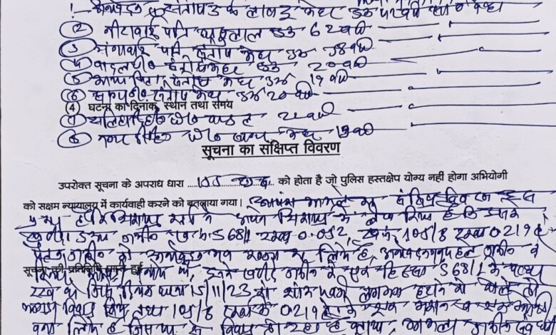 अवैध कब्जाधारी के द्वारा दि गई झूठे केश में फंसाने की धमकी की शिकायत पर ईमानदार पुलिस अधिकारी शिव कुमार धारी द्वारा धारा 155 में काट दिया फैना …