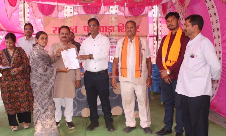 इस दौरान अतिथियों ने बी 1 नकल, नामांतरण, बंटवारा, सीमांकन, डायवर्सन, वृक्ष कटाई की अनुमति, द्वितीय प्रति किसान किताब, आय- जाति- निवास प्रमाण पत्र, अभिलेख त्रुटि सुधार, रिकॉर्ड दुरूस्ती तथा वन पट्टा का फौती नामांतरण, प्राकृतिक आपदा इत्यादि प्रकरणों के दस्तावेज 42 किसानों को वितरित किये। किसानों ने अपने कार्य के शीघ्र निराकरण के कार्यवाही को मंच के माध्यम से सबके सामने बखान किया और मुख्यमंत्री विष्णु देव साय सहित पूरे जिला प्रशासन को धन्यवाद ज्ञापित किया।