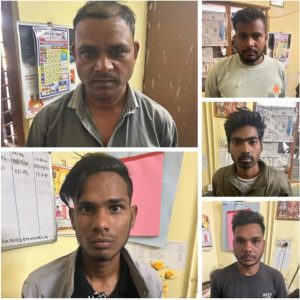 आरोपियों के नाम 1. आकाश कुर्रे उम्र 18 साल 17 दिन निवासी ग्राम कोटिया थाना नवागढ़ जिला जांजगीर चांपा 2. खेलप्रकाश बघेल उम्र 26 साल निवासी ग्राम सोनादह थाना बिर्रा जिला जांजगीर चांपा 3. राकेश राठौर उम्र 35 साल निवासी ग्राम मुनूद थाना जांजगीर जिला जांजगीर चांपा 4. राजेश राठौर उम्र 41 साल निवासी ग्राम मुनूद थाना जांजगीर जिला जांजगीर चांपा 5. किशन कश्यप उम्र 22 साल निवासी नैला थाना नैला जिला जांजगीर चांपा6. अपचारी बालक 04 नफर