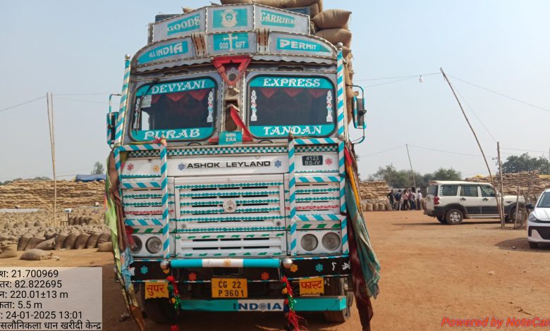 धान खरीदी केन्द्र सलौनीकला में धान की अफरातफरी करते ट्रक पकड़ाया