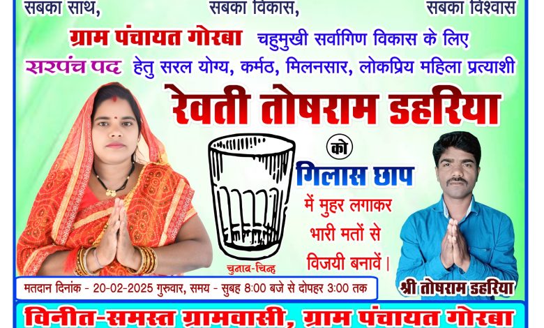 ग्राम पंचायत गोरबा में सरपंच पद पर रेवती तोषराम डहरिया की बड़ी जीत…