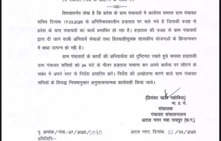 हड़ताली ग्राम पंचायत सचिवों को अल्टीमेटम, 24 घंटे के भीतर लौटे काम पर, वरना नौकरी खतरे में…