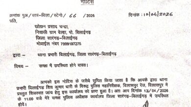 सारंगढ़ बिलाईगढ़ – जिला दंडाधिकारी डॉ संजय कन्नौजे ने आरोपी चंद्रशेखर अंगारे पिता शम्भू लाल अंगारे निवासी शुक्लाभाटा (सोहागपुर) बिलाईगढ़,…